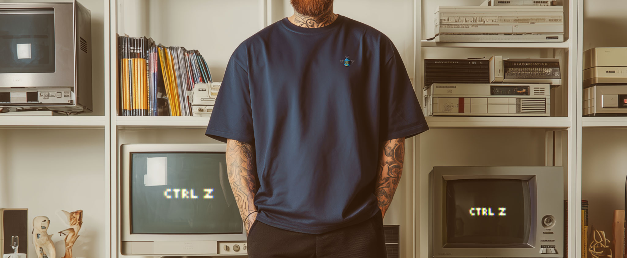 CTRL Z is a love letter to the dial-up internet era and a quiet protest against the always-on culture. Each garment features subtle original pixel art referencing 1990-2000s tech – inviting to be noticed in passing and to reminisce together to a bygone era when tech was more human.